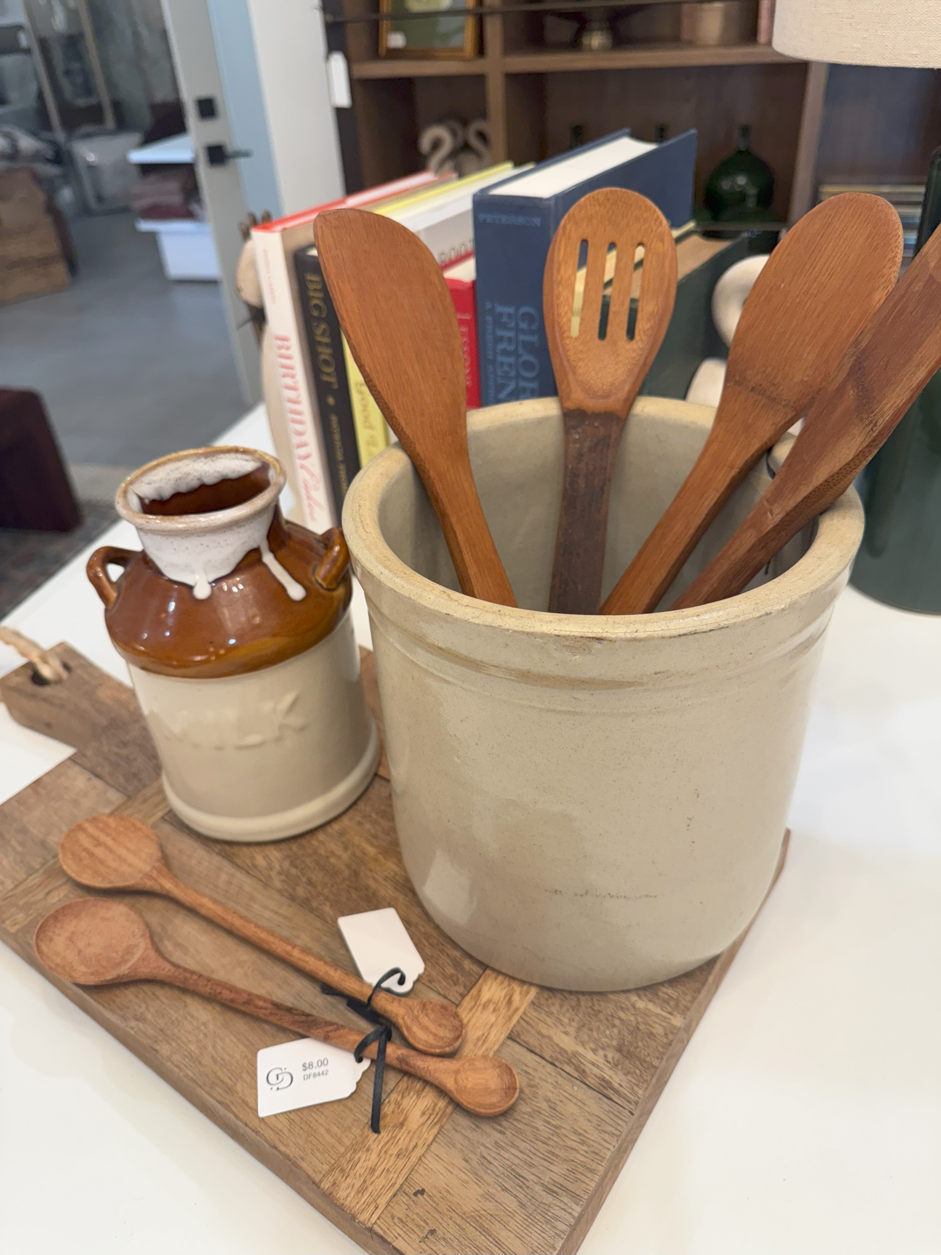 This charming stoneware pot is the perfect addition to your kitchen! While having that vintage charm, it is a neutral piece flexible for any aesthetic!